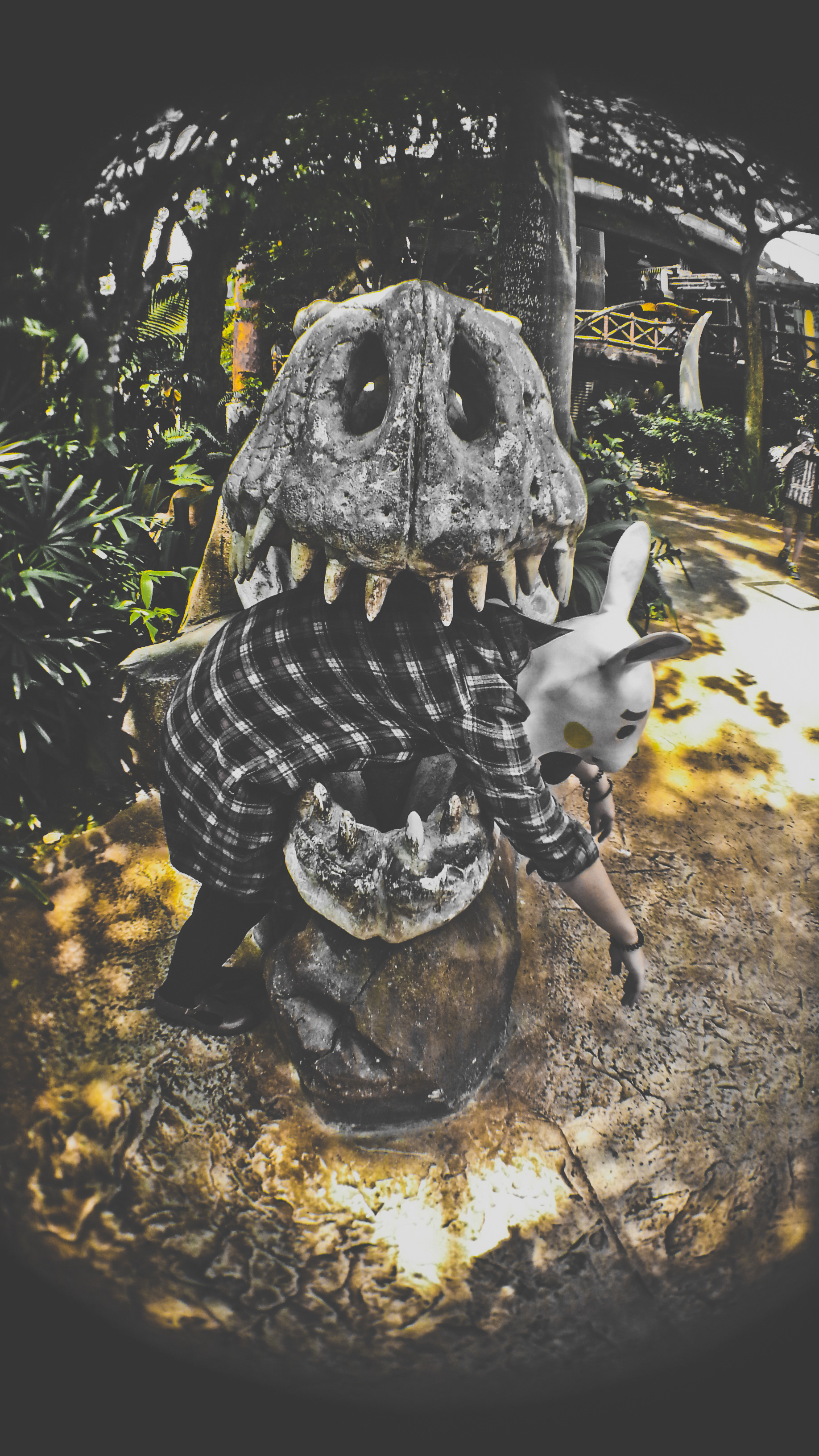手机/ 相机自拍10定时器 / 戴着兔子头,穿梭与人群异样阳光中,拍摄的流浪背包客